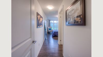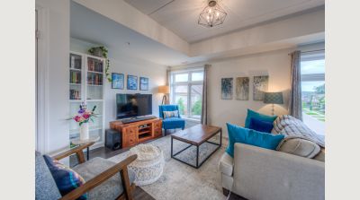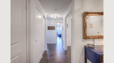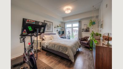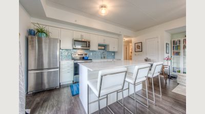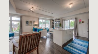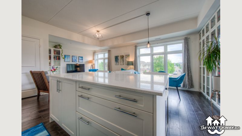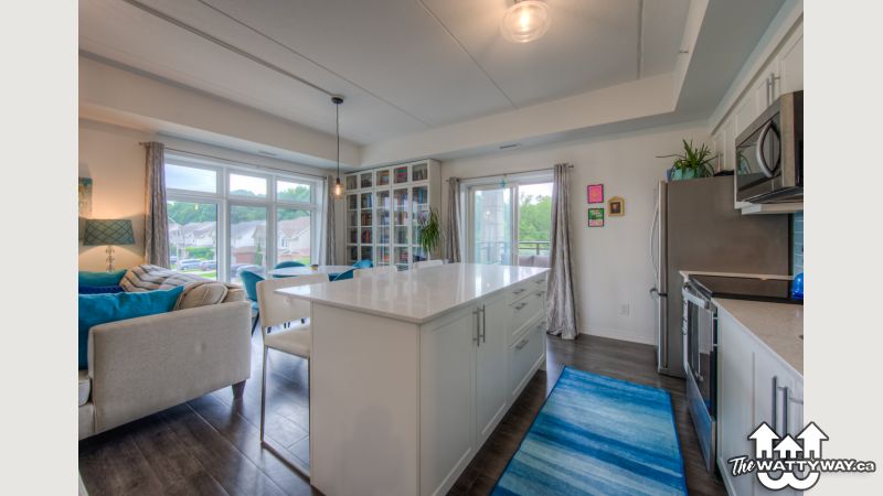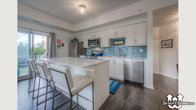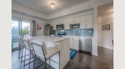 This uncommonly graceful 1,147 square foot corner unit offers an elevated take on the urban condo experience. Built in 2020, Williamsburg Walk provides its residents with easy walking access to all the key amenities of the Williamsburg Town Centre, including groceries, banks, clinics and pharmacies, community centres, great restaurants, and more, all in a stylish contemporary package. Unit 213 boasts an airy open-concept feel, with two very generously sized bedrooms (including the primary, with its three-piece ensuite bath), an upgraded living/dining space, and walk-out covered balcony with western exposure; an ideal perch for watching the colours change this fall in the protected Borden Wetlands, right across the road. The kitchen, built around a large quartz island, features upgraded lighting (as can be found throughout the unit), an upgraded dishwasher, and a sleek custom backsplash. Pride of ownership is evident everywhere you look in this immaculately maintained home; an excellent opportunity for downsizers, young couples, and families just starting out. Private parking for your vehicle can be found just steps from the building’s back door, with access to the expressway at Fischer-Hallman Road less than five minutes away. Williamsburg itself is a safe, quiet community with friendly neighbours, where you’ll be able to feel a sense of belonging right away. Don’t wait to explore this chance to live an uncommonly convenient lifestyle, in uncommonly beautiful surroundings!