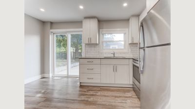 Central Rosemount, and available for immediate occupancy! This bright and inviting two-level apartment offers a perfect blend of modern comfort and convenience. With 2 bedrooms and 1 bathroom, this space is ideal for small families, professionals, or anyone seeking a cozy yet stylish place to call home. The primary bedroom is conveniently located on the main floor for easy access. Step inside to find a spotless interior featuring all-new, carpet-free flooring and fresh paint throughout, creating a crisp and welcoming atmosphere. The sleek, modern kitchen is a standout, complete with a stainless steel appliance set and a chic subway tile backsplash, perfect for cooking and entertaining. From the kitchen, step out to a private rear yard with a concrete patio and a handy storage shed, great for relaxing or hosting friends. The apartment is filled with modern pot lights, adding a warm and contemporary vibe. Enjoy the convenience of in-unit laundry and direct entry from outside. Two driveway parking spaces are included! Nestled in a mature, quiet Kitchener neighbourhood, this home is centrally located with easy access to schools, shopping, and public transit. The expressway is just around the corner, making commutes quick and simple. Don’t miss this opportunity to lease a clean, modern, and well-located apartment that’s ready for you to move in and enjoy!