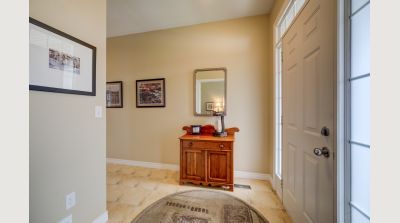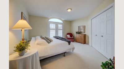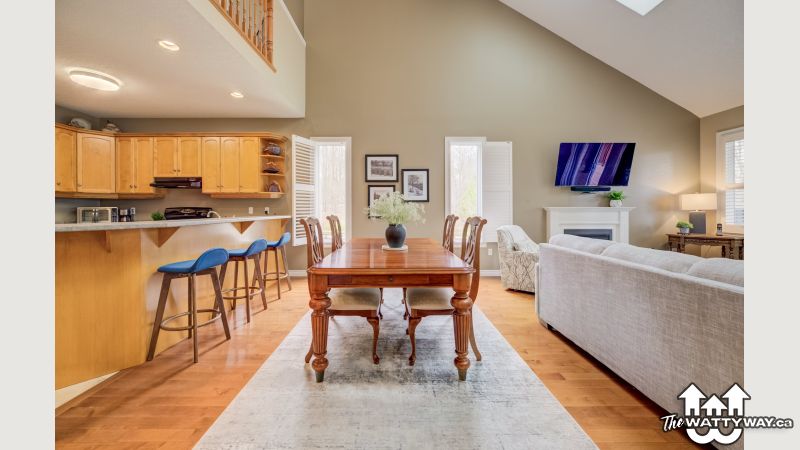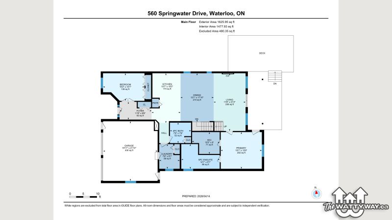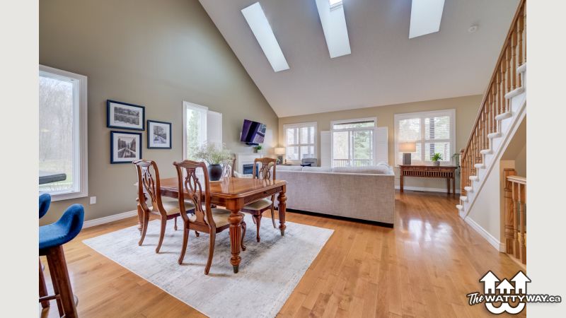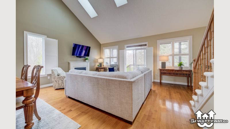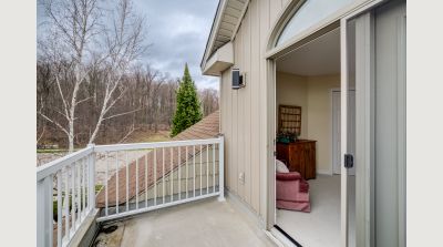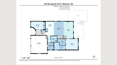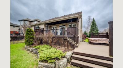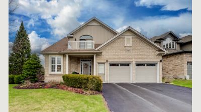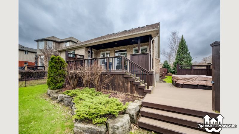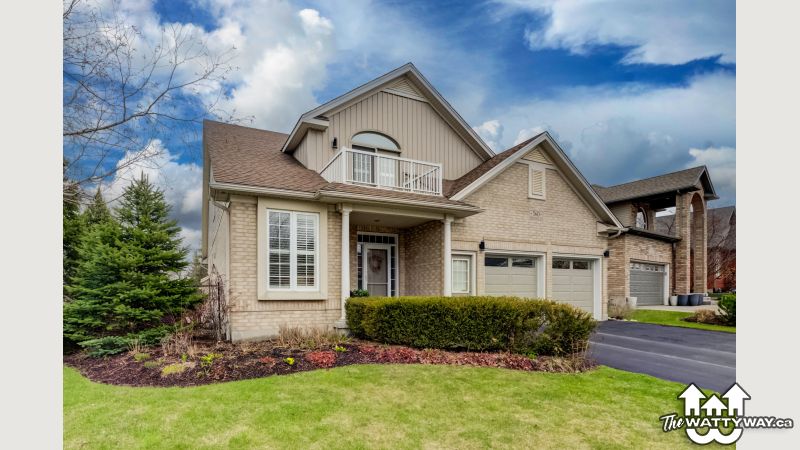An abundance of bright, airy space, soaring ceilings and exceptional versatility characterize this handsome Conservation Meadows bungaloft, nestled on an oversized lot just a stone's throw from Laurel Creek, and a short 5-minute drive from the St. Jacob's Farmer's Market. 560 Springwater Drive impresses right from the start, with stately curb appeal and pristinely manicured landscaped grounds. The sprawling main level reveals itself from a welcoming foyer, with a flexible office space located immediately to the left - which could also be easily repurposed as an additional bedroom, given its abundant closet space. Off to the right lies inside entry from the double garage, with a full four-piece bathroom and main floor laundry room rounding out the wing. The kitchen lies at the metaphorical and literal heart of the home, with ample storage and prep space, a graciously sized breakfast bar, and views through to the open concept living and dining space with its cozy gas fireplace, towering ceiling height, updated skylights, and sliding walk-out access to the covered, multi-tiered composite deck at the rear of the home. There's more than enough room here for entertaining in warmer weather, with a hot tub incorporated in the lower portion, and neatly kept gardens in the fully fenced yard beyond. Back inside and at the rear of the home is the primary suite - a peaceful space with private walk-out access to the deck, a massive walk-in closet, and a luxurious five-piece ensuite with dual vanities and a tub. Upstairs is even more bright living space - highlights here include an additional two bedrooms (one with its very own private walkout balcony), another four piece bathroom, and a sizable family room ideal for more casual get-togethers. The partially finished basement provides a rough-in for a powder room, yet another bedroom, ample storage space, and something of a blank canvas for your own creative urges. Whether upsizing, making the switch to multi-generational living, or simply searching for something that truly wows you - this home is not to be missed!