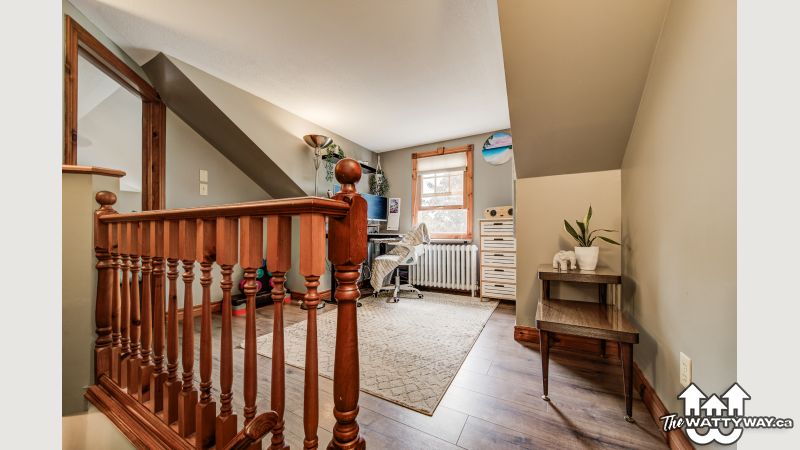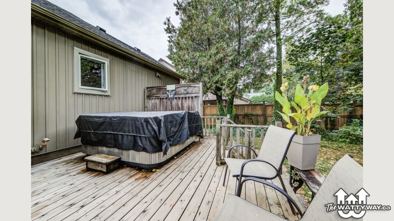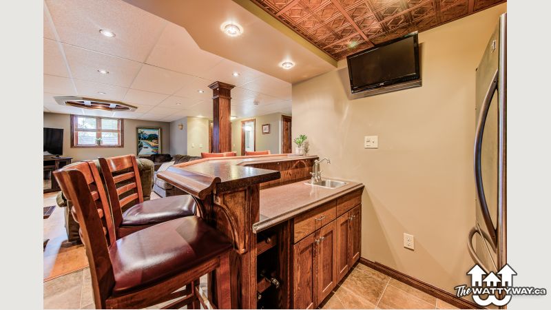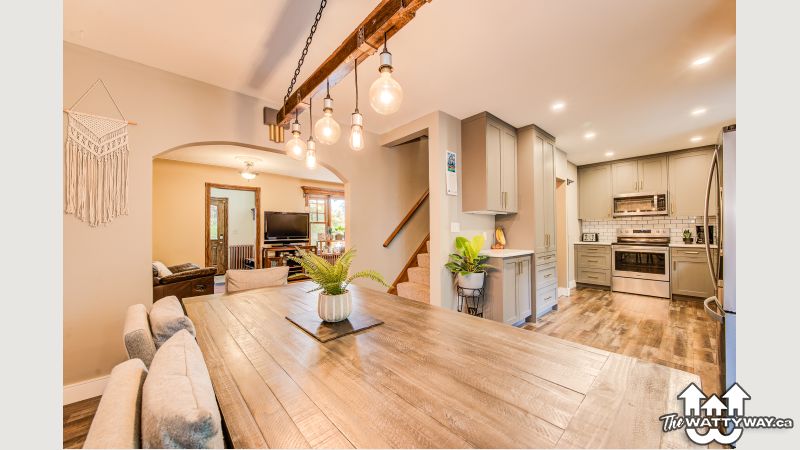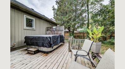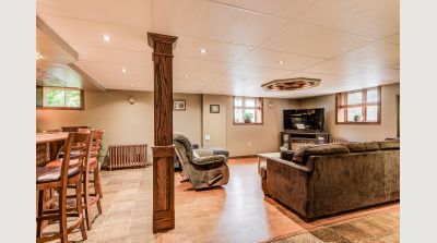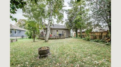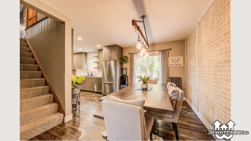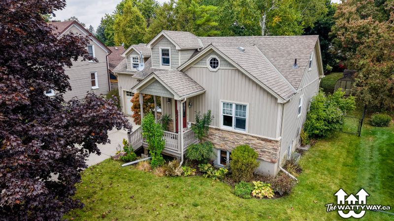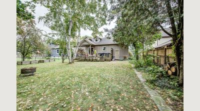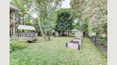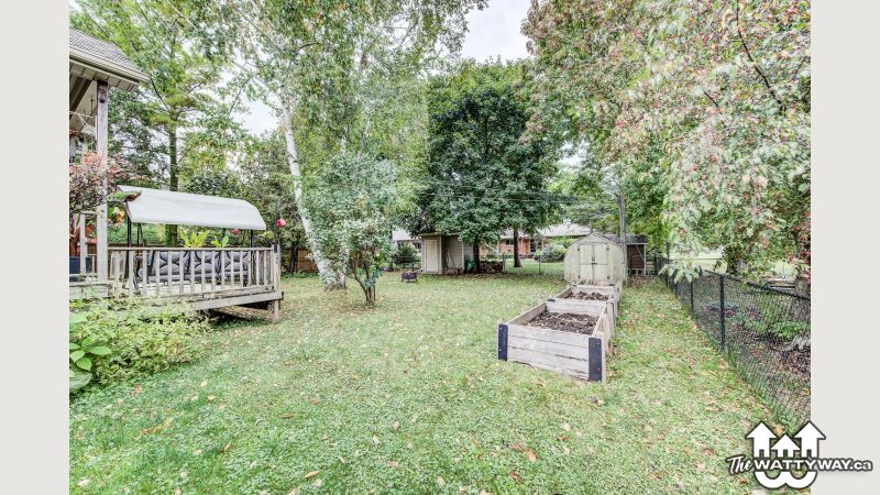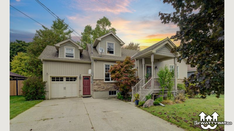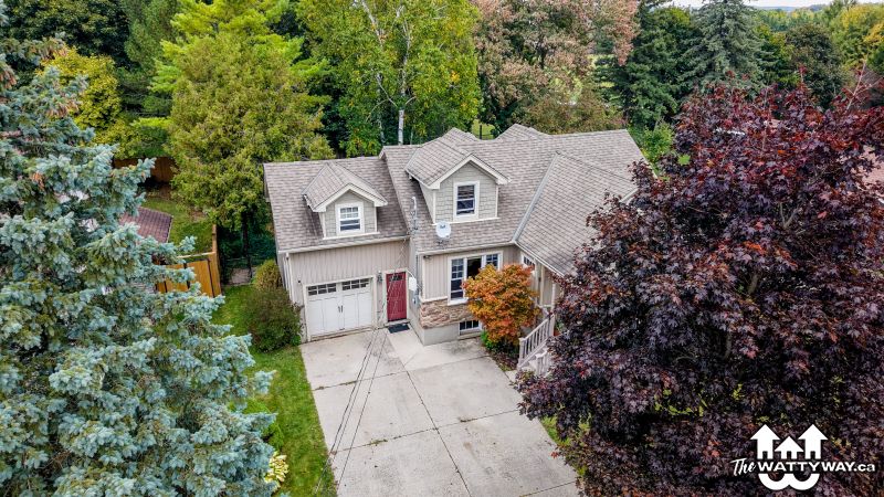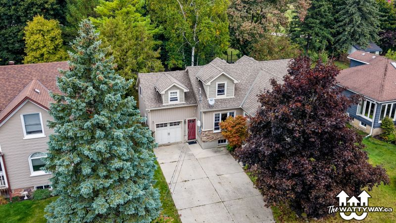 There’s plenty of room to roam in peaceful Wellesley! This four-bedroom home with three full bathrooms offers itself as an ideal venue for any growing family to settle in and spread out. 1105 Queen’s Bush Road sits back on a generously sized 64x131 foot lot, only footsteps west of Wellesley Public School, and less than a five-minute stroll from the centre of Downtown Wellesley. A beautifully renovated kitchen is the heart of the carpet-free primary floor, which also hosts a pair of large bedrooms in the east wing of the home, separated by a full four-piece family bath. A cheery living room is positioned to greet visitors at the front of the home, as they step inside from the covered front porch – a great spot to sit with a cold pint or glass of wine and watch the quiet daily life of Wellesley pass by. Sliders from the dining room adjacent to the kitchen lead out to a sizable elevated, multi-level deck, which in turn overlooks a sprawling, fully fenced rear yard – a private and secure space for the kids to run off some steam, or for your pets to roam. Back inside, the upper storey hosts an additional two bedrooms, including the primary suite and its luxurious four-piece ensuite, plus a double-sized walk-in closet. Meanwhile, the central upstairs hallway is easily large enough to accommodate an at-home office or hobby space! But perhaps the best trick up this home’s sleeve lies in the finished basement – your own private tin ceilinged pub with a full wet bar. Any sports fan is sure to pass many an hour entertaining down here. With parking for up to five vehicles between the attached single garage and double-wide concrete drive, and central Kitchener-Waterloo a mere 20-minute drive away, who wouldn’t love to call this home their own?