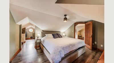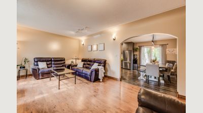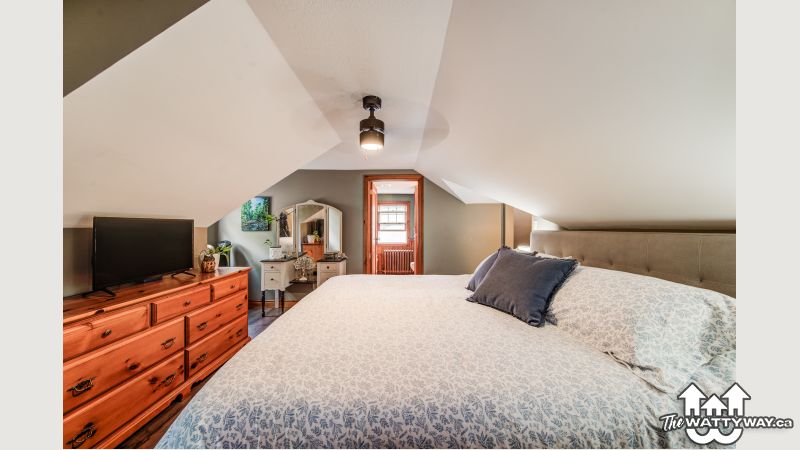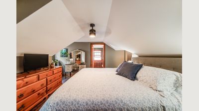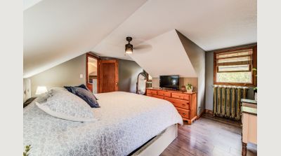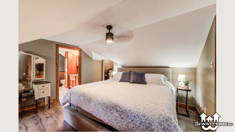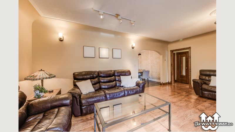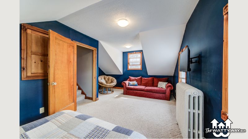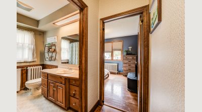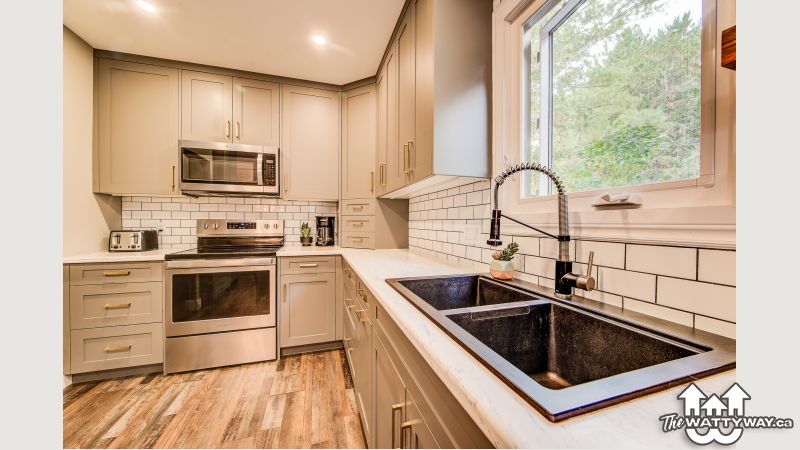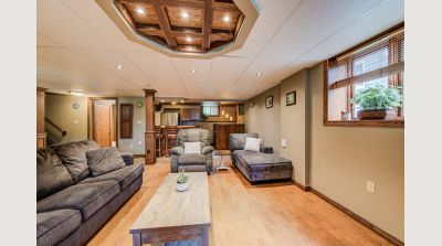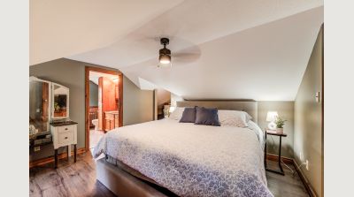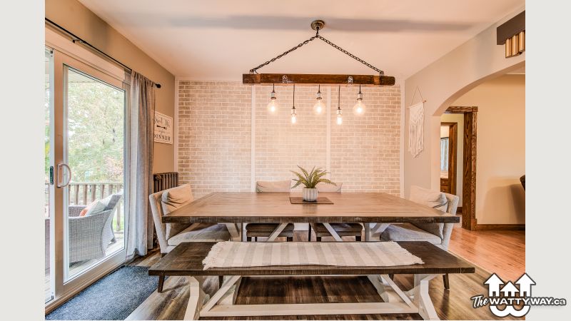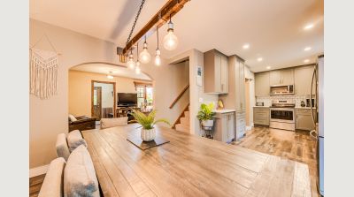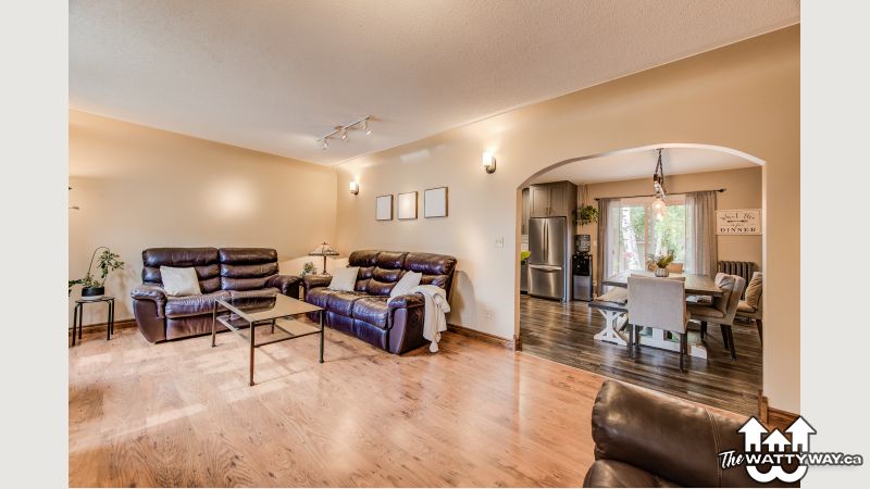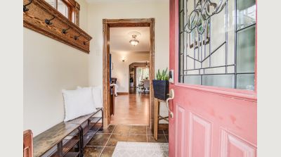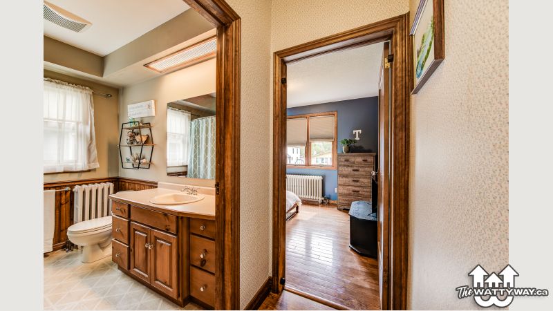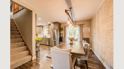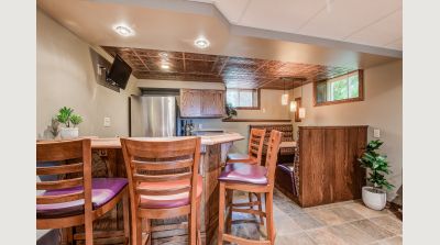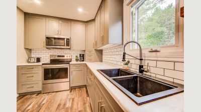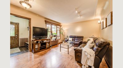There’s plenty of room to roam in peaceful Wellesley! This four-bedroom home with three full bathrooms offers itself as an ideal venue for any growing family to settle in and spread out. 1105 Queen’s Bush Road sits back on a generously sized 64x131 foot lot, only footsteps west of Wellesley Public School, and less than a five-minute stroll from the centre of Downtown Wellesley. A beautifully renovated kitchen is the heart of the carpet-free primary floor, which also hosts a pair of large bedrooms in the east wing of the home, separated by a full four-piece family bath. A cheery living room is positioned to greet visitors at the front of the home, as they step inside from the covered front porch – a great spot to sit with a cold pint or glass of wine and watch the quiet daily life of Wellesley pass by. Sliders from the dining room adjacent to the kitchen lead out to a sizable elevated, multi-level deck, which in turn overlooks a sprawling, fully fenced rear yard – a private and secure space for the kids to run off some steam, or for your pets to roam. Back inside, the upper storey hosts an additional two bedrooms, including the primary suite and its luxurious four-piece ensuite, plus a double-sized walk-in closet. Meanwhile, the central upstairs hallway is easily large enough to accommodate an at-home office or hobby space! But perhaps the best trick up this home’s sleeve lies in the finished basement – your own private tin ceilinged pub with a full wet bar. Any sports fan is sure to pass many an hour entertaining down here. With parking for up to five vehicles between the attached single garage and double-wide concrete drive, and central Kitchener-Waterloo a mere 20-minute drive away, who wouldn’t love to call this home their own?